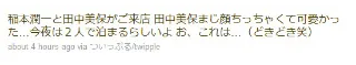 「稲本潤一と田中美保がご来店 田中美保まじ顔ちっちゃくて可愛かった…今夜は2人で泊まるらしいよ お、これは…(どきどき笑)」