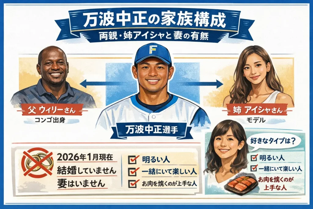 結論:万波中正の家族構成(両親・姉アイシャ)と妻の有無