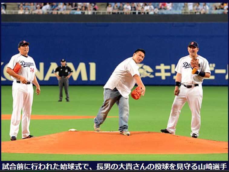 長男の名前は山崎大貴(だいき)さんです。2013年の引退時に高校2年生(愛工大名電高校)で、引退セレモニーで始球式を務めました。